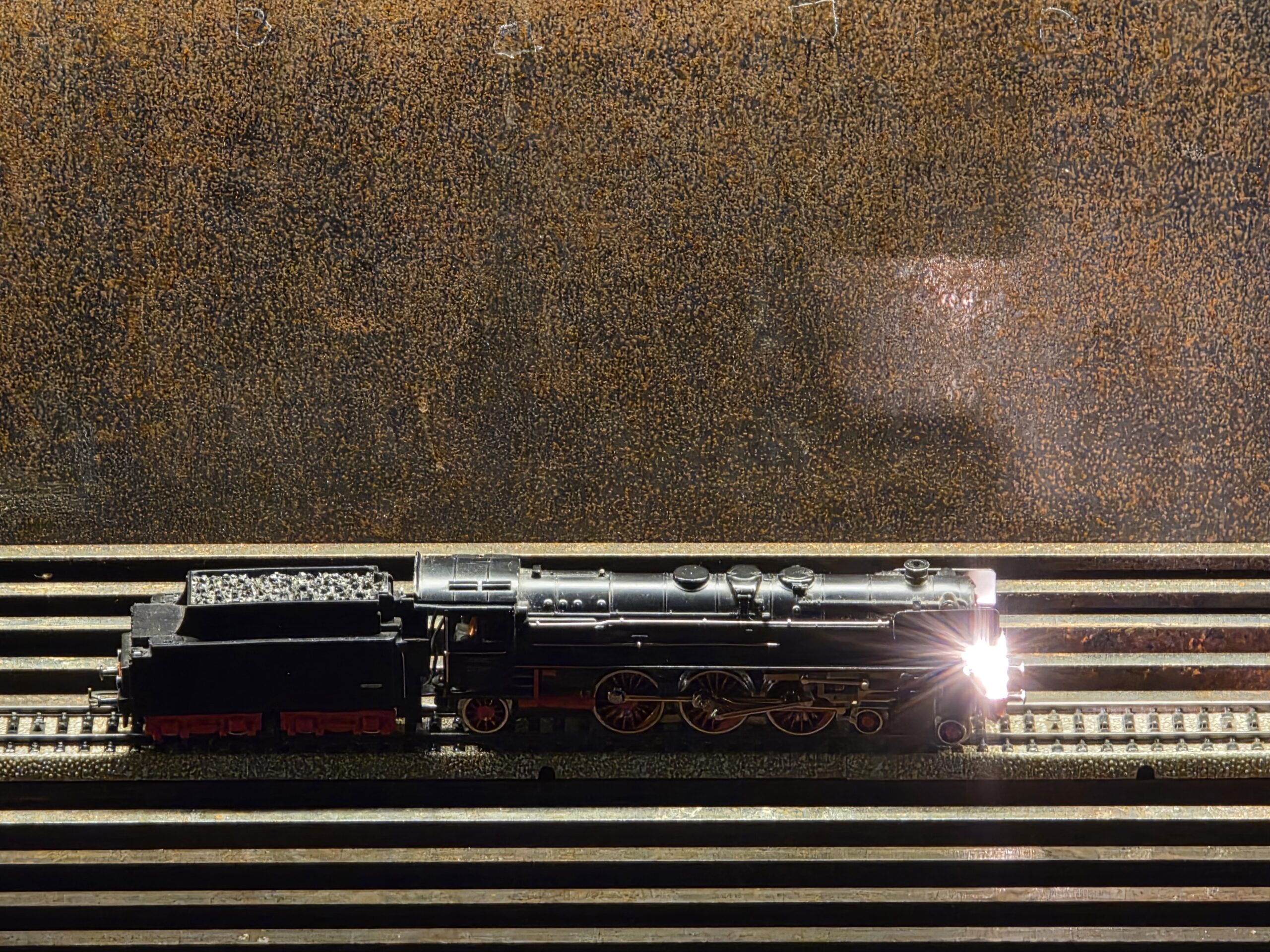 TitelJärnvägskorsning av strålkastarljus